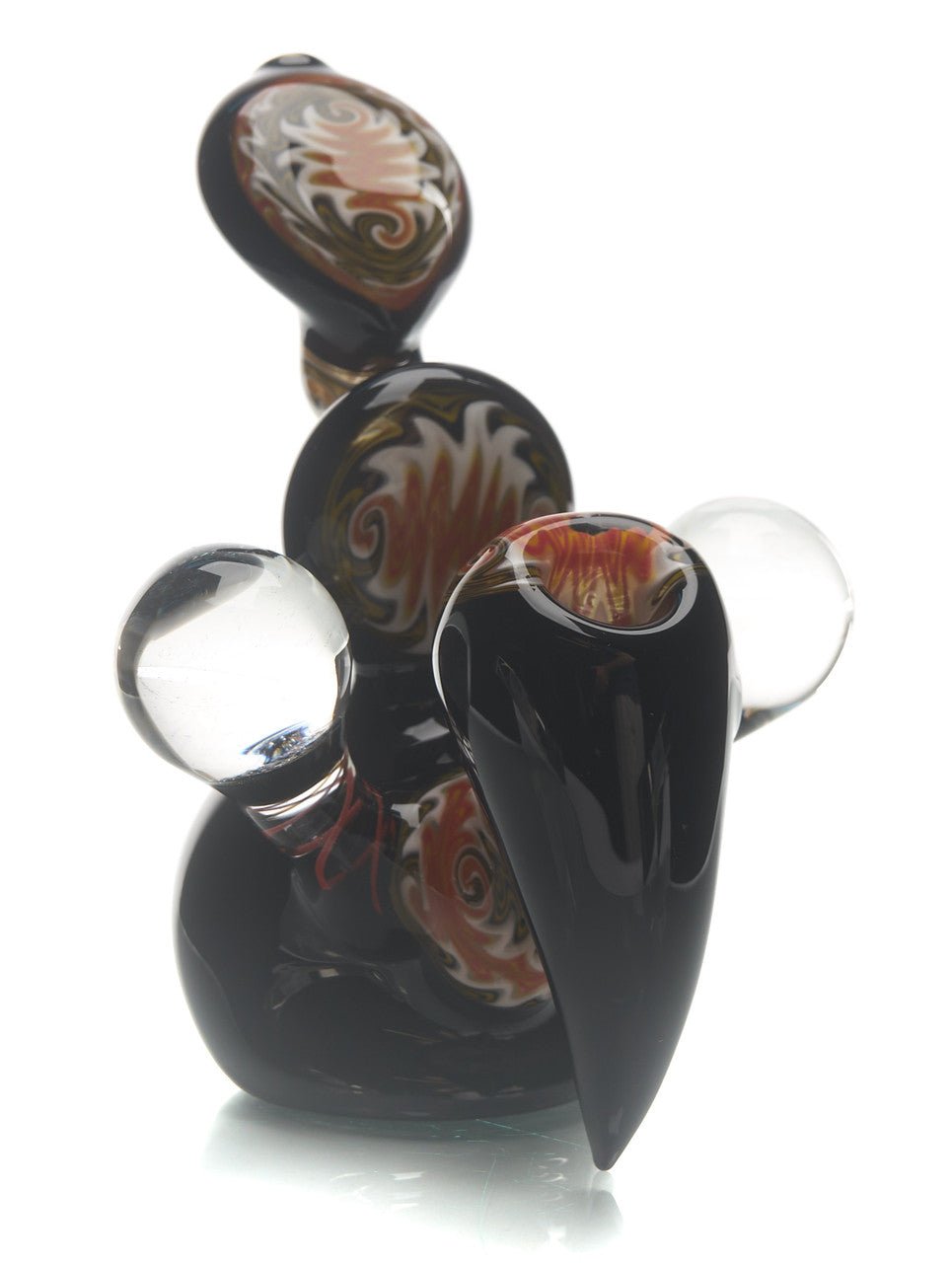 Looking to own your first heady piece without breaking the bank? You're in luck! The MOB Short Heady Bubbler is the perfect heady piece if you're looking to immerse yourself in heady culture without a mega splurge in your forecast. The MOB Short Heady Bubbler is handcrafted from borosilicate glass and flaunts intricae wig-wag accents throughout the bubbler to give it a "heady feel." This bubbler features a deep bowl set at a 45-degree angle to keep your lit herb far away from your face, leaving you all the room to enjoy dense, smooth smoke! Nestled between the bowl are two dichroic marble accents that gives this bubbler the perfect amount of shine and pop. To make your smoking all the better, the MOB Short Heady Bubbler is loaded with a carb hole and a reservior for water to ensure that all hits are seamless and direct upon the final inhale. Without a doubt, the MOB Short Heady Bubbler is the best choice for a starter heady piece!