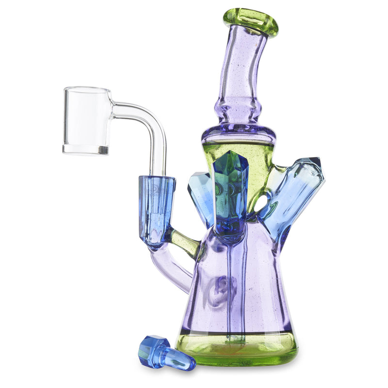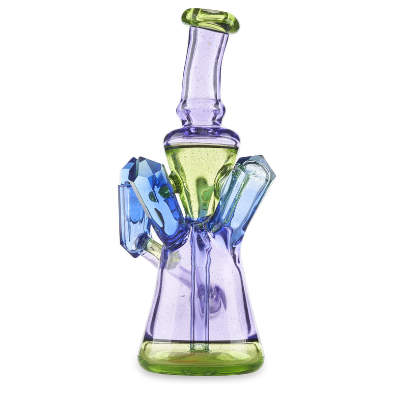 Murdoc Glass AKA David Trout the cold work sculpting master, is currently melting glass in Denver, CO. This Purple Rain & Haterade hydro Recycler from Murdoc Glass is a prime example of the talent David brings to the industry! Murdoc's carving and cold working skills are nearly unrivaled! The cold worked faceted gems on the back of the piece giving off the most elegant, and delicate esthetic. Make this gorgeous piece of art the center of your collection today.