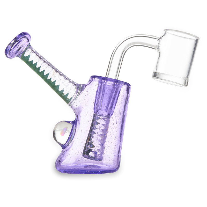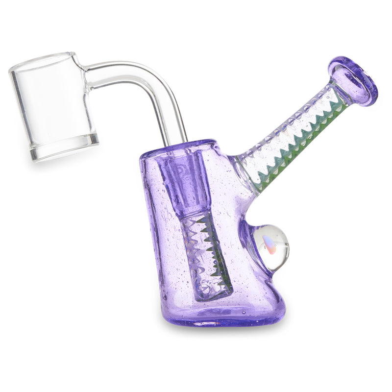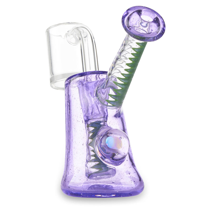 The Zipper is a phenomenal rig design that uses very little water, preserving flavor to the utmost degree. The body is full color, with wonderful wig wag mouthpiece and downstem. To top it off, there is an awesome opal encasement on the backside.