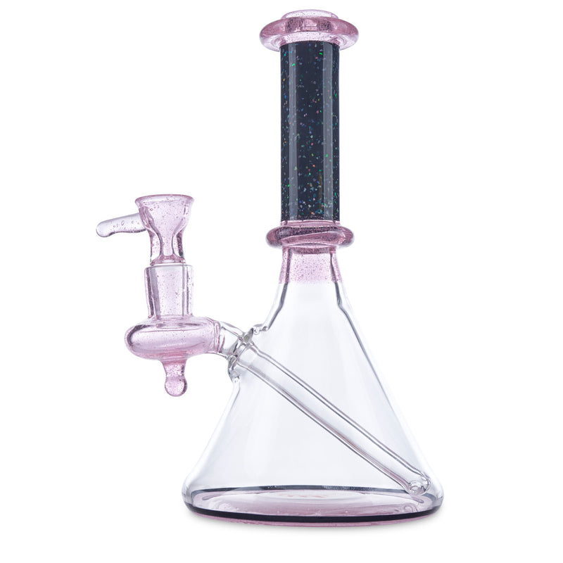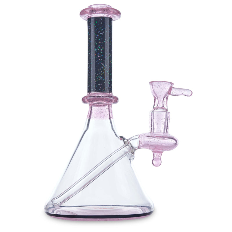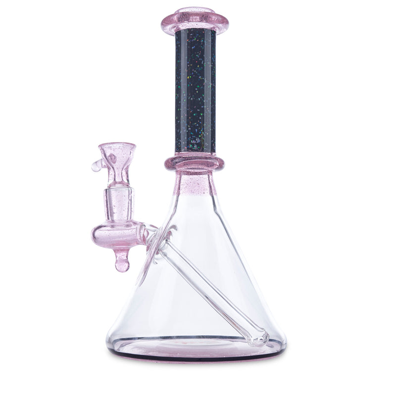 Dan Neff has been creating beautiful glass art since 2003. Since he's started, he has been mastering his craft by working with world-renowned artists while traveling across the country. Dan's passion is shown throughout each of his glass pieces such as this Neff Banger Hanger. This banger hanger features a crushed opal worked straight neck with rosay glass on the neck and joint. Additionally, this piece features a red and blue wig wag design on the base. This Neff Banger Hanger comes with a matching rosay 14mm slide included.