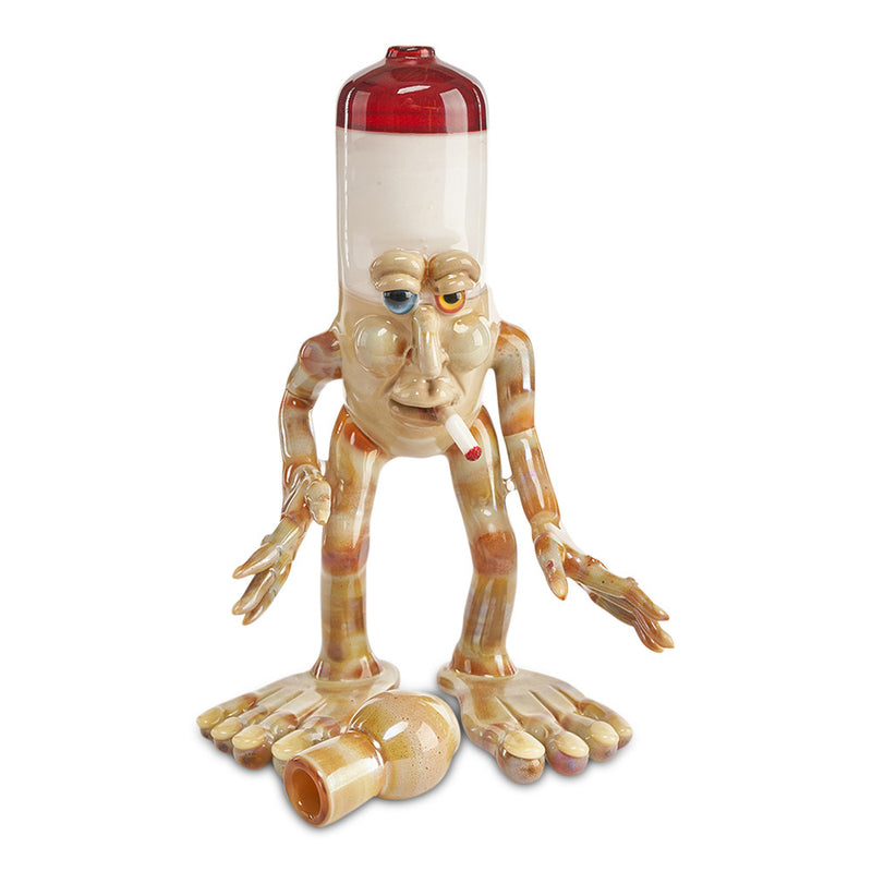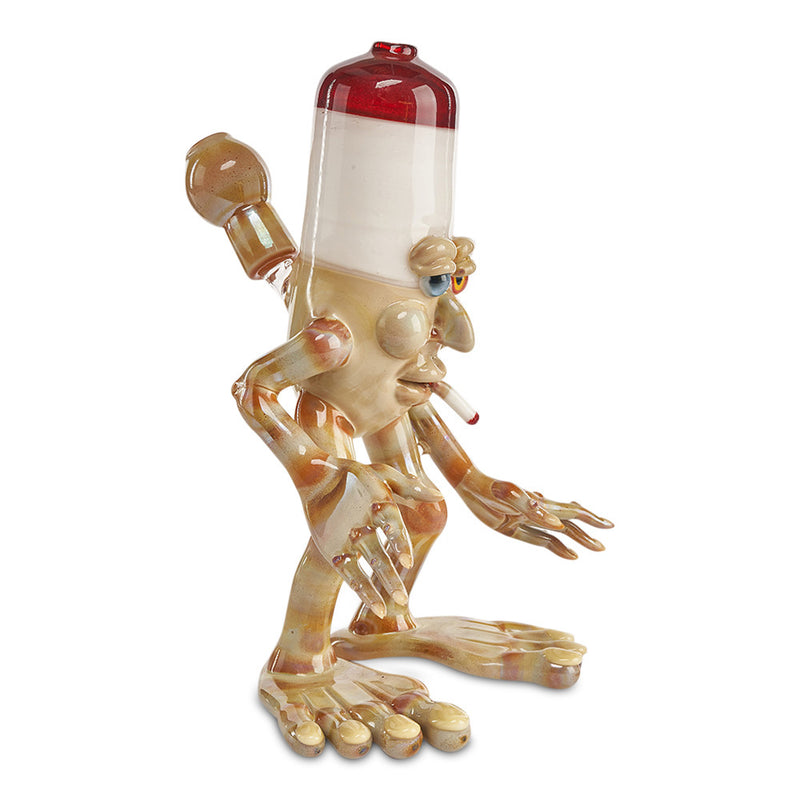 The "Cigarette" is an amazing, one-of-a-kind sculpture that Niko Cray created to pay homage to his 6th year of no cigarettes. The construction of the face - his eyes and cigarette-holding mouth - is astounding, but the most incredible details of this piece are the hands and oversized feet, which are perfectly proportioned and balanced.