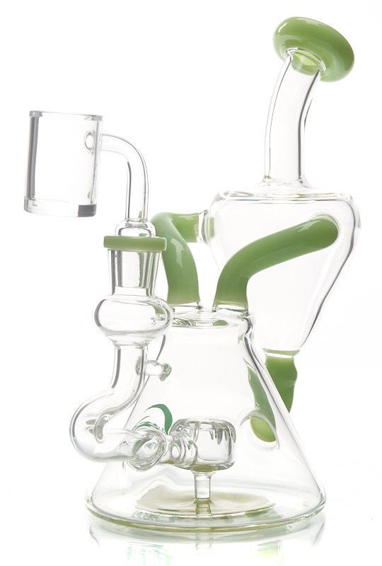 The Olympus Matador is all about bringing your smoking experience to new heights with its impressive design and functionality! This dual-functional water pipe can be used with your favorite concentrate or dry herb, making you the matador of your smoking experience. The Olympus Matador features lustrous tubing made from borosilicate glass and is equipped with a wide beaker base for supreme durability! The Matador comes furnished with a 90-degree joint piece paired with a fixed slitted disc percolator. This water pipe’s slitted disc percolator works in unison with its wide beaker base to ensure that your smoke has ample room to perfectly filtrate with radial symmetry! This ensures that all hits, rips, and more are silky smooth and easy on your throat. An additional feature the Matador has for supreme filtration is its dual-arm recycler allowing your smoke to go through the filtration process one more time before blasting off straight to the dome! Whether you’re down to have a sesh on your favorite desk, table, or in your lap, you can relish in the convenience of the Matador with its bent neck. You can find the Olympus Matador outfitted with colored accents on its mouth piece, dual-arms, and joint piece in your choice of two outstanding colors! With the Olympus Matador, you’ll take all the reigns and fame of having the best smoking experience.