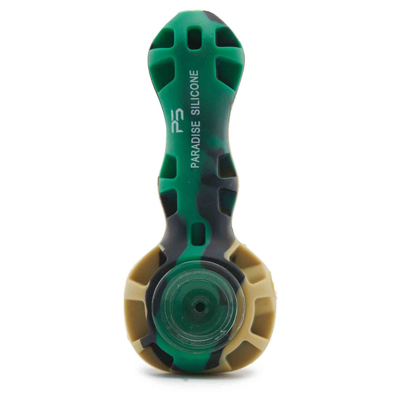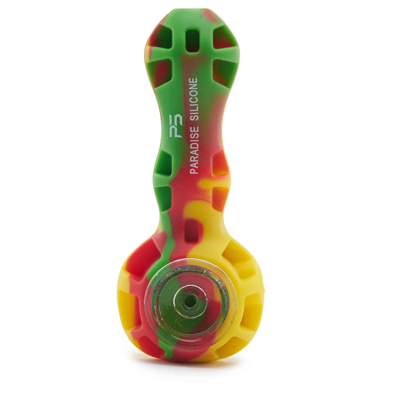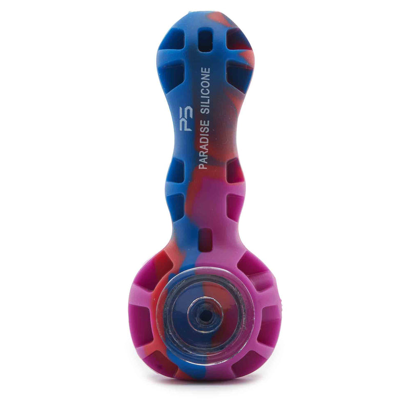 We all know how frustrating it can be when a glass piece shatters, so why not invest in a piece that won't break? The Paradise Silicone Honeycomb Spoons are virtually unbreakable with the silicone structure. This Hand Pipe is lightweight and features a deep single-hole removable bowl for easy cleaning. Additionally, the Paradise Silicone Honeycomb Spoon comes with an extra scrape tool, stored on the bottom of the handle, that can be used to clean out the bowl after use or can be utilized with concentrate products. There is also a removable cap on the bottom of the bowl revealing extra storage space. This spoon is designed with a unique honeycomb pattern throughout the piece and is available in many different colors. Stop worrying about the safety of your pieces with the Paradise Silicone Honeycomb Spoon.