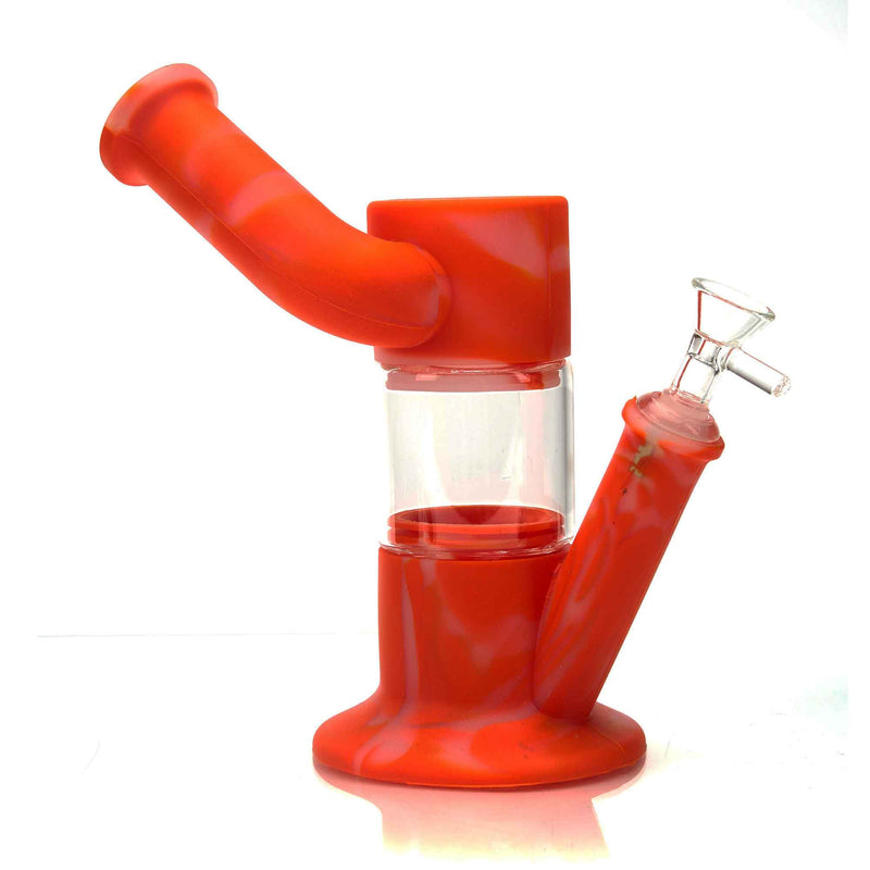 For all tokers looking for a durable water pipe without sacrificing an entire glass set up, the Paradise Silicone Side-Cart is here to save the day! This unique water pipe is made from 100% washable, food-grade, toxin-free silicone, giving you all the reigns to smoke safely and happily from the Side-Cart. The Side-Cart features a wide base for additional durability and is ready to be smoked atop any table-top surface, or even your lap! With the Paradise Silicone Side-Cart, you relish in smooth rips and tokes with its fixed in-line percolator. The Side-Cart features a glass chamber so you can see the percolator working its magic, and is a great asset if you’re looking to smoke out of a durable water pipe, without completely sacrificing glass! With its 45-degree, 18mm female joint piece, you can comfortably fit your favorite 18mm male slide into the joint to start enjoying the phenomenal smoking experience that comes with this water pipe! An additional feature of the Paradise Silicone Side-Cart is its ability to be completely deconstructed for easy, quick cleaning. You can find this awesome water pipe outfitted with sick designs in your choice of 2 color options!