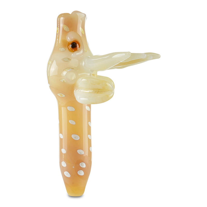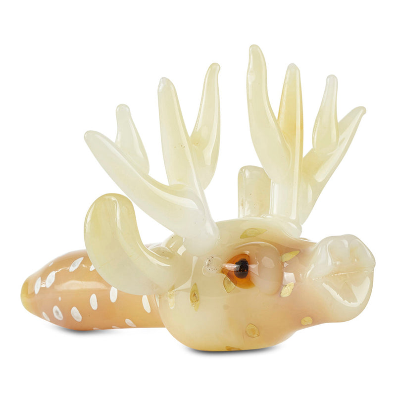 Hunting season is never over with the Pioneer Deer Novelty Hand Pipe. This Buck will be your best shot yet with the beautiful borosilicate glass design featuring gorgeous white glass antlers, ears, and a white spotted body. You'll never let this deer run away with the ear and antlers providing you extra support when holding. With beautiful aesthetics and great function, you should definitely take your shot with the Pioneer Deer Novelty Hand Pipe.