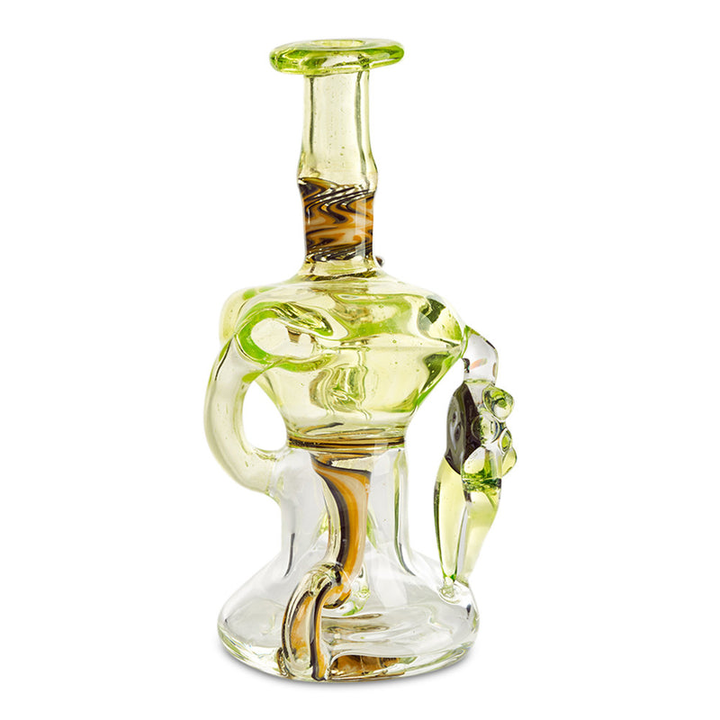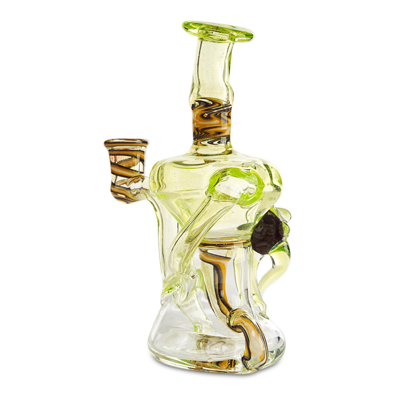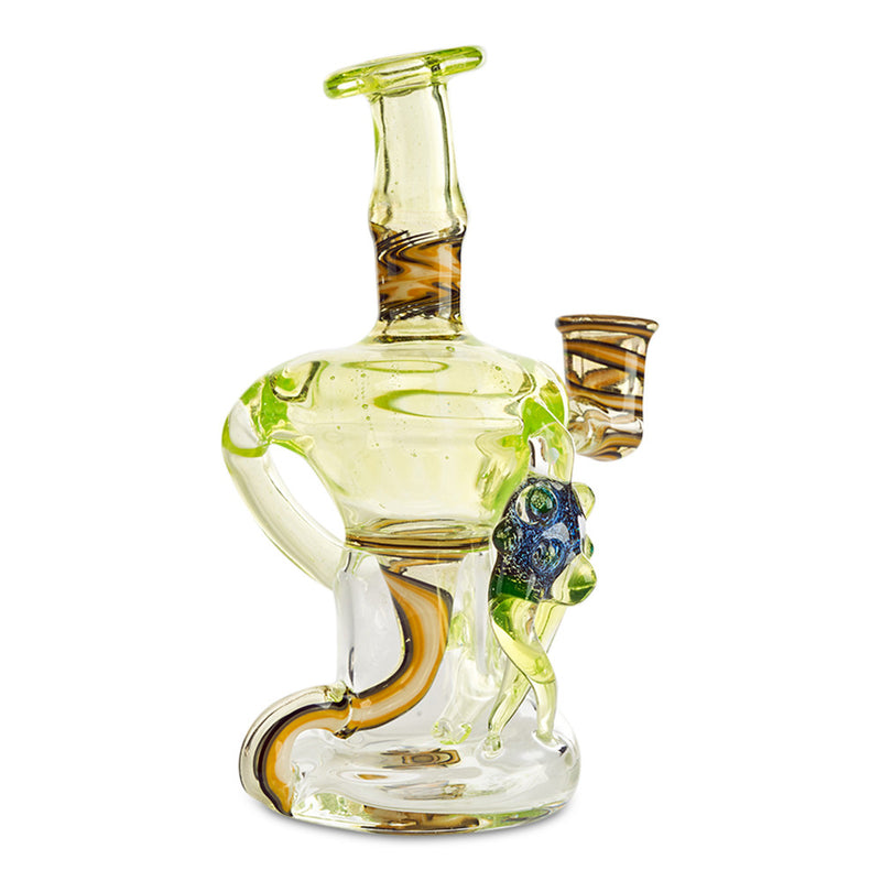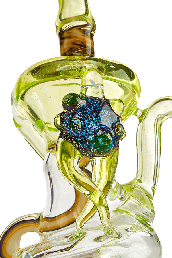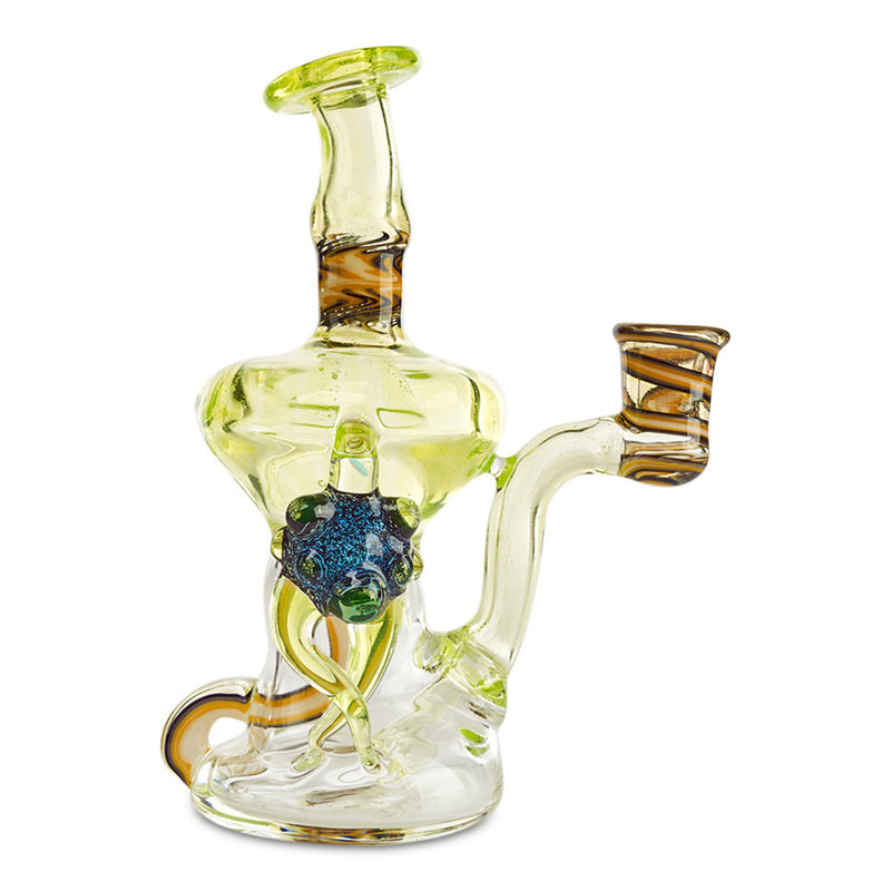 If you want amazing function, amazing looks, and a great price? Look no further. This Prism Glassworks Illuminati Recycler delivers in all areas. Functionally, the piece is super chuggy and recycles perfectly. The Illuminati sections glow extremely bright under UV light, and the dichro shines and sparkles in the sunlight.