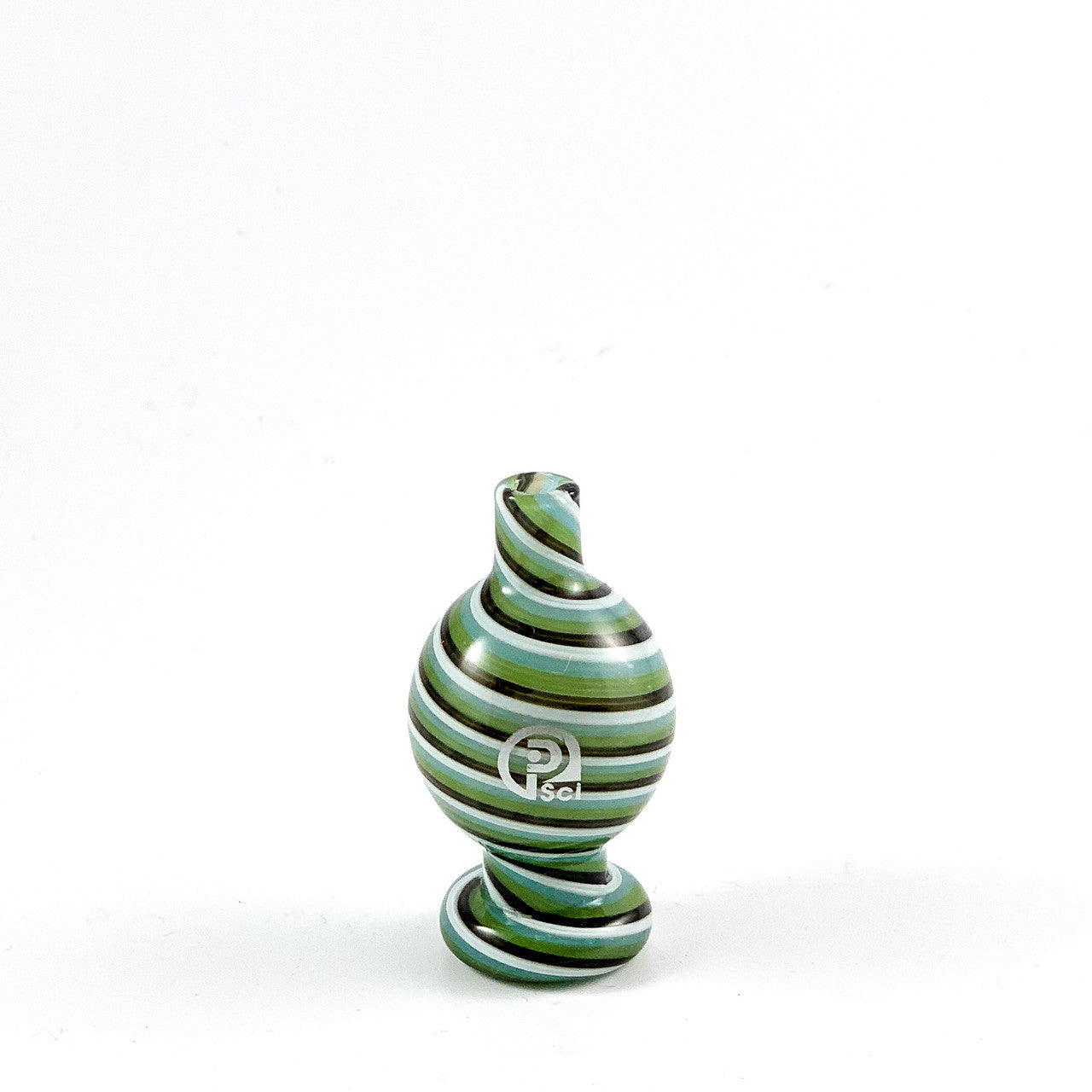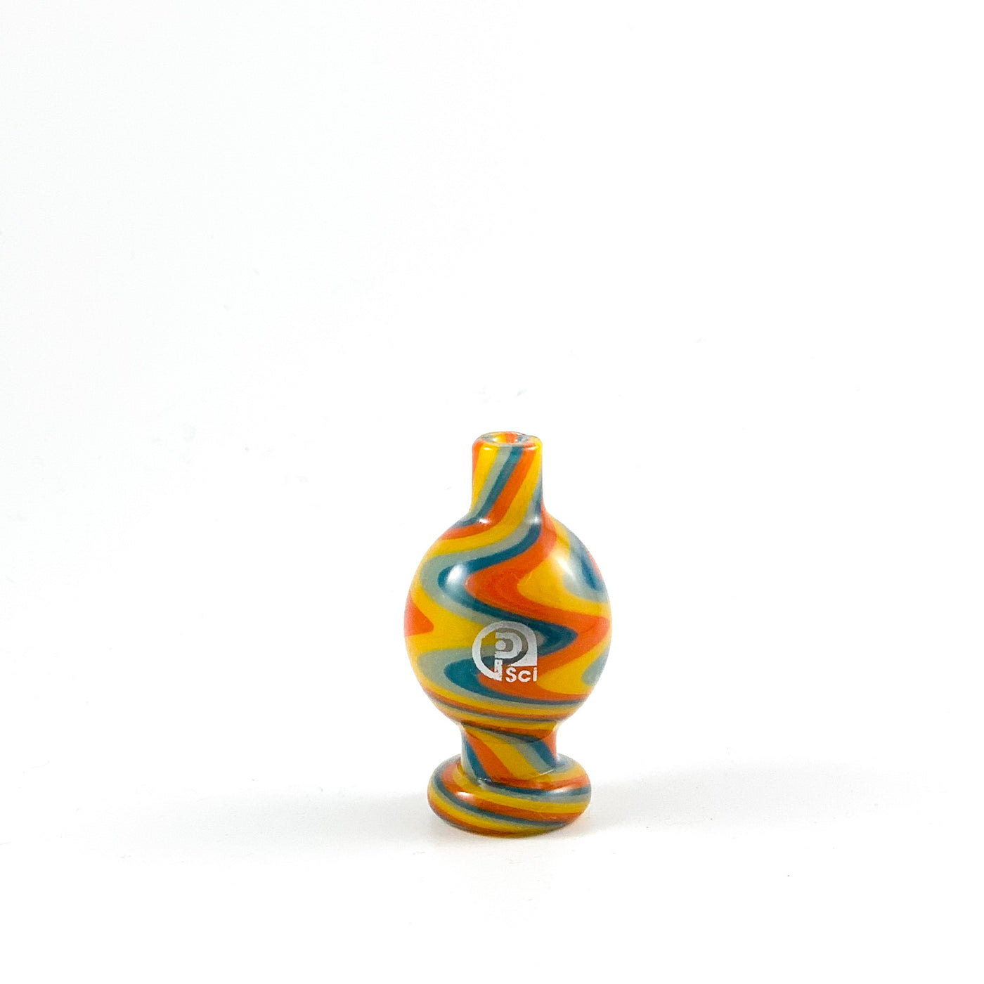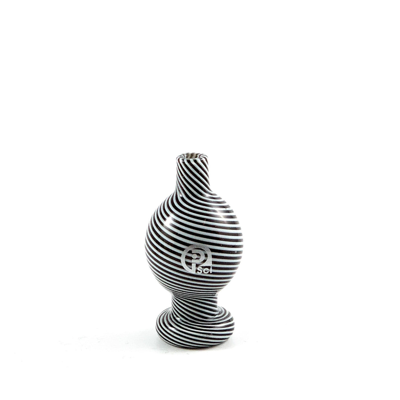 The PSci Wig-Wag Carb Cap is a quintessential part of any dabbing experience. Made from borosilicate glass, the Wig-Wag Carb Cap is designed for durability. This directional carb cap takes on a shape of the bubble, which is complementary for any flat-top banger, and will create a solid seal for ultimate concentrate convection. Once you have a Wig-Wag Carb Cap on your banger, you have all power granted to determine the airflow; making you the ultimate dab wizard! The PSci Wig-Wag Carb Cap features exquisite wig-wag design in your choice of 5 outstanding color combinations to suit your aesthetic desires. The PSci Wig-Wag Carb Cap is bound to become a stable to your dabbing routine!