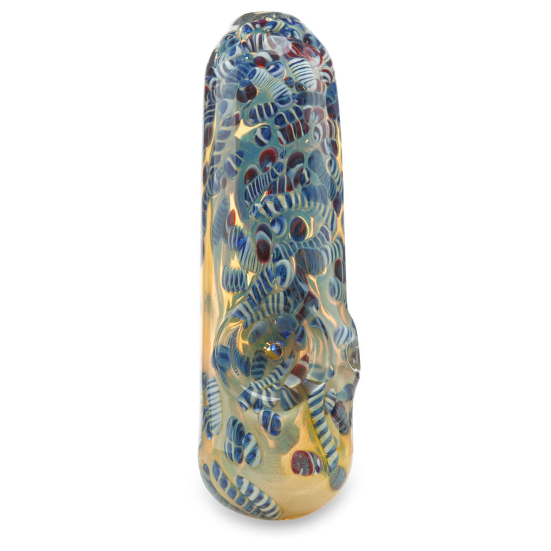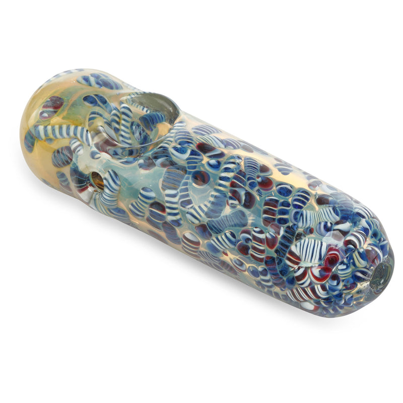 Add some character to your glass arsenal with the Relic Hand Pipe. The Relic Hand Pipe is a dope cylindrical borosilicate glass spoon pipe made with thick quality glass. Featuring a deep bowl and compact size, this piece is great for traveling and for use in group sessions. The unique design on this piece features blue worm-like patterns throughout that definitely makes this piece one-of-kind.