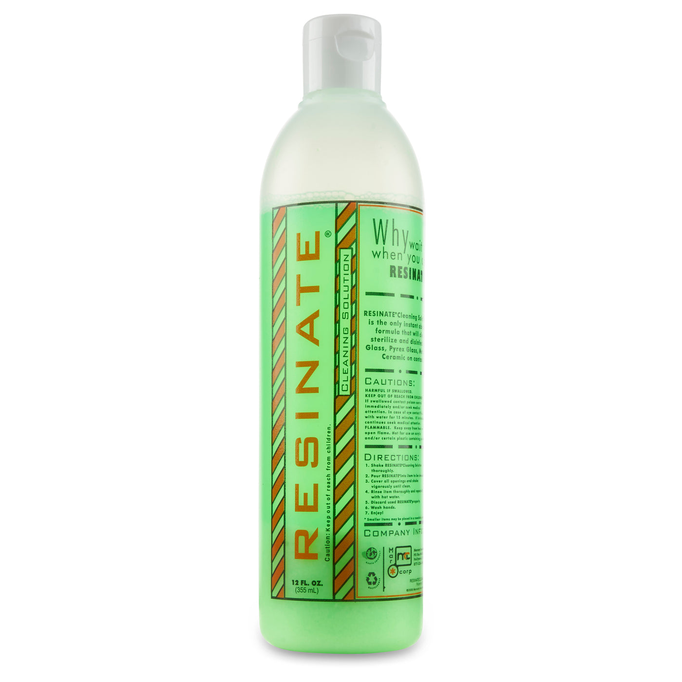 Keep your water pipes, hookah, vaporizers, and glass as well as metal and ceramic super clean with Resinate® Cleaning Solution. The only instant non-abrasive formula, Resinate Cleaning Solution is specially designed for sterilizing and disinfecting your favorite smoke pieces with leaving any residue behind. The Resinate Cleaning Solution cleans faster and easier than Alcohol. Resinate Cleaning Solution has 2 different formulas -- the Resinate Green is an alcohol-free, scratch-resistant abrasive cleaner that works instantly to remove burnt resin. Resinate Blue is a non-abrasive soaking solution that is perfect for removing oils, waxes, and dabs.