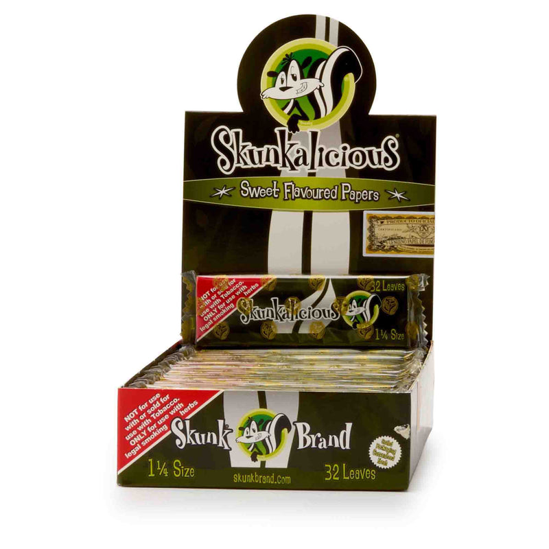 Don't be afraid to smoke the skunk! These sweet 1 1/4-inch rolling papers from Skunk Brand come in a variety of delectable flavors for every taste, delivering the perfect compliment to your herb. Made of high-quality, plant-based gum, these vegan-friendly papers include a run preventing watermark, keeping the burn slow and controlled throughout your session. Hand-packed in Alcoy, Spain - the birthplace of rolling papers - Skunk Brand papers are the perfect addition to your rolling routine.