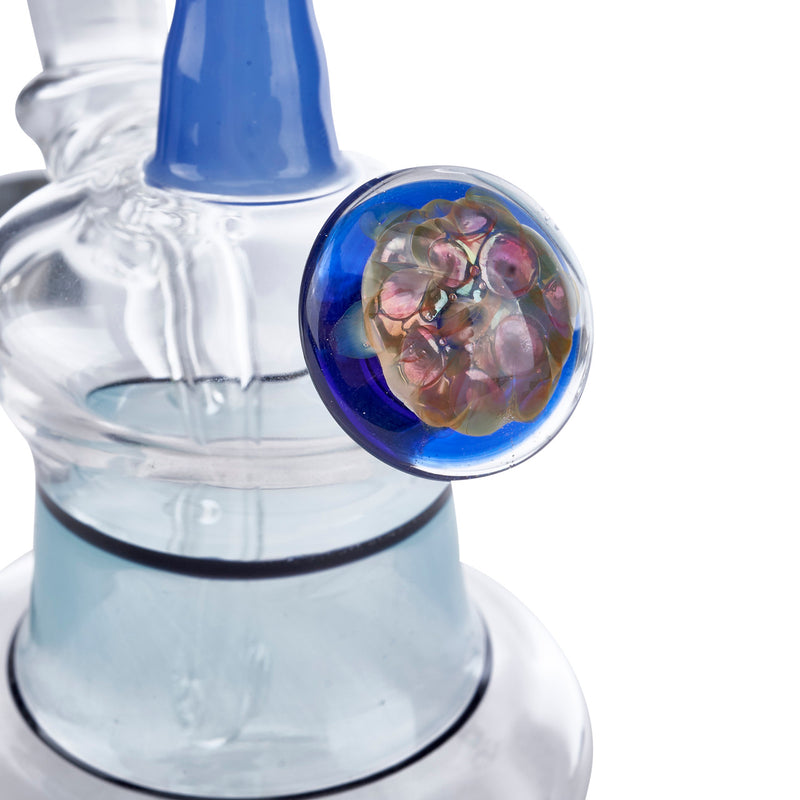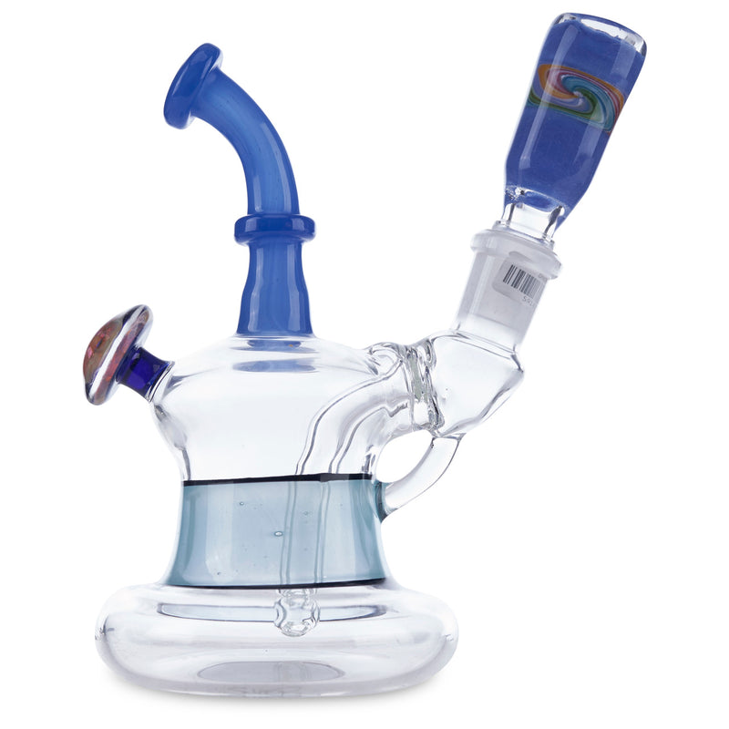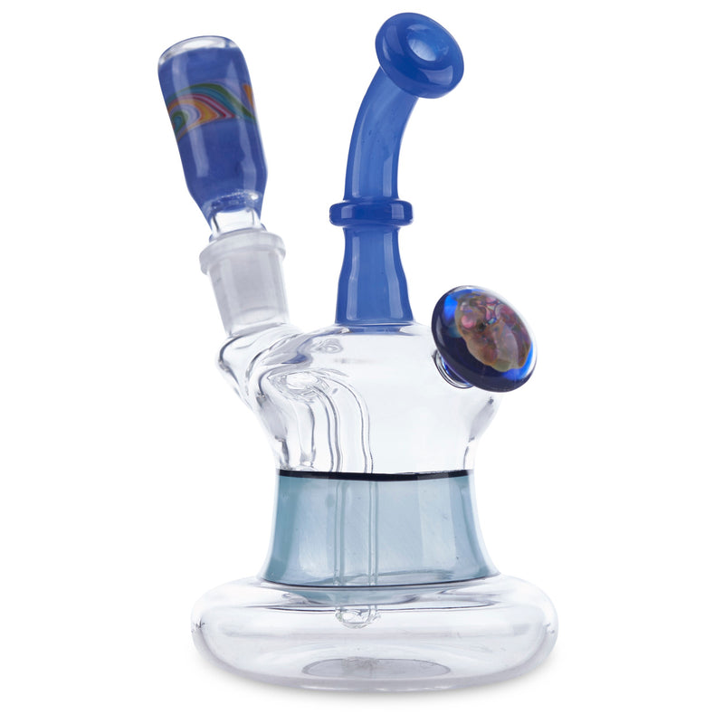 Snoop Glass is a heady glass artist located in Asheville, North Carolina. This Snoop Glass banger hanger will definitely catch some eyes with the beautiful blue cheese color on the stem and around the body of the pipe. The back of the water pipe features a beautiful fumed marble. This banger hanger comes with a matching blue cheese bowl with rainbow linework on the middle of the slide. Get the Snoop Glass Banger Hanger today at Cloud 9 Smoke Co.!