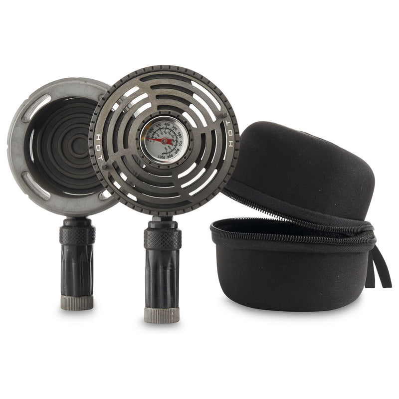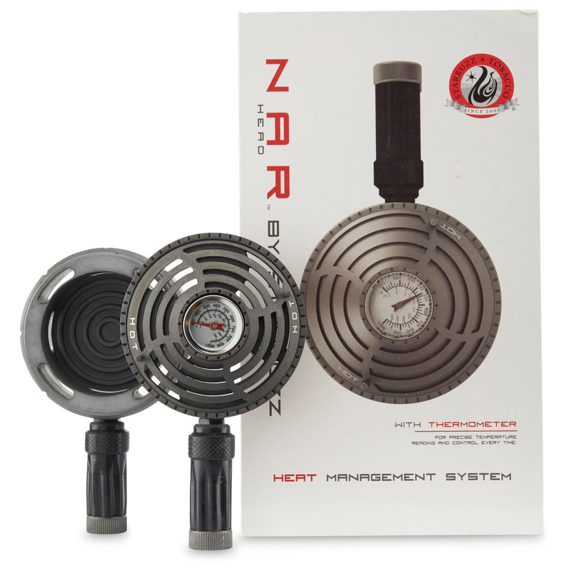 Ditch the foil with the Starbuzz Nar Head Heat Manager. The Nar Head works by placing your coals inside the heat manager and placing the device on top of your bowl. The built-in thermometer gives you the exact temperature of your coals allowing you to keep your hookah burning at the perfect temperature. The design of the Nar Head keeps coal ashes from falling into your bowl as opposed to the usual tin foil method. If you notice your coals getting to hot, the heat manager features controlled air-flow slots that you can expose by rotating the top of the Nar Head. These slots allow the heat to escape and cool down the coals. For more rapid cooling, you can easily take the top off of the system. Additionally, the Starbuzz Nar Head has detachable rubber handles that you can use to move the heat manager without burning your hand. Take control of the heat with the Starbuzz Nar Head Heat Manager.