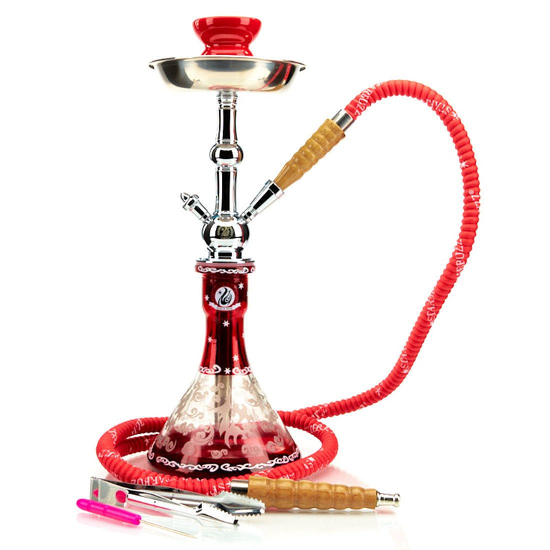 - Contains all hookah essentials: hose, clay bowl, tongs, and poker