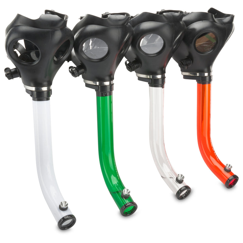 Get steamy with the Steam-Roller Gas Mask Sets! These novelty gas mask pipes ensures you get the most of your dry-herb. Once you take a hit, you can't escape the smoke allowing you to feel the full hit without any waste. Each set comes with an awesome acrylic steam-roller that fits perfectly in the gas mask. Each mask has adjustable straps allowing you to comfortably fit the mask on your head. Available in multiple color options.