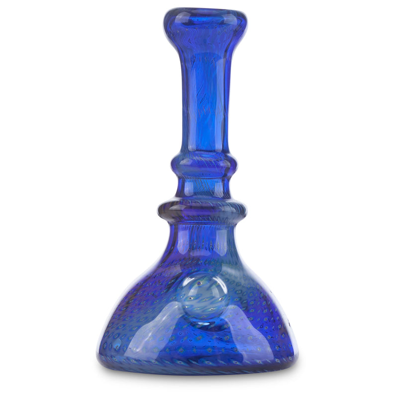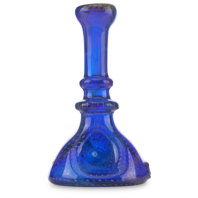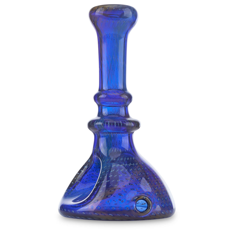 Steve Sizelove is an award-winning glass artist with a passion for creating amazing glass art pieces. This free standing hand pipe features a unique design made by using the bubble trapping technique, popular among Sizelove's pieces. The hand pipe is designed with cobalt blue and amber glass. The front of the pipe is flat so you can stand it up on it's own. Get this beautiful hand pipe today!