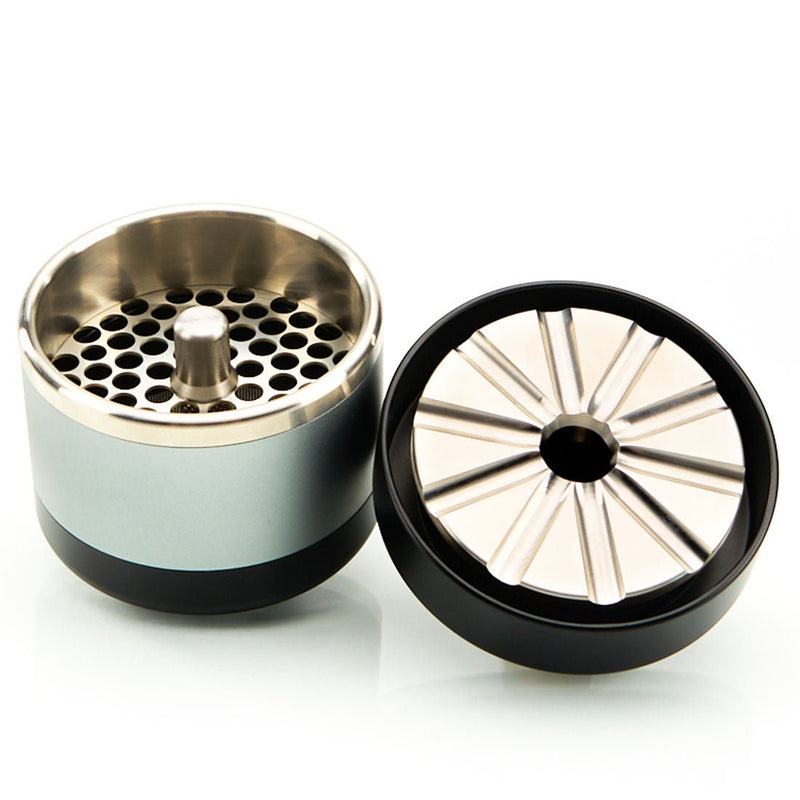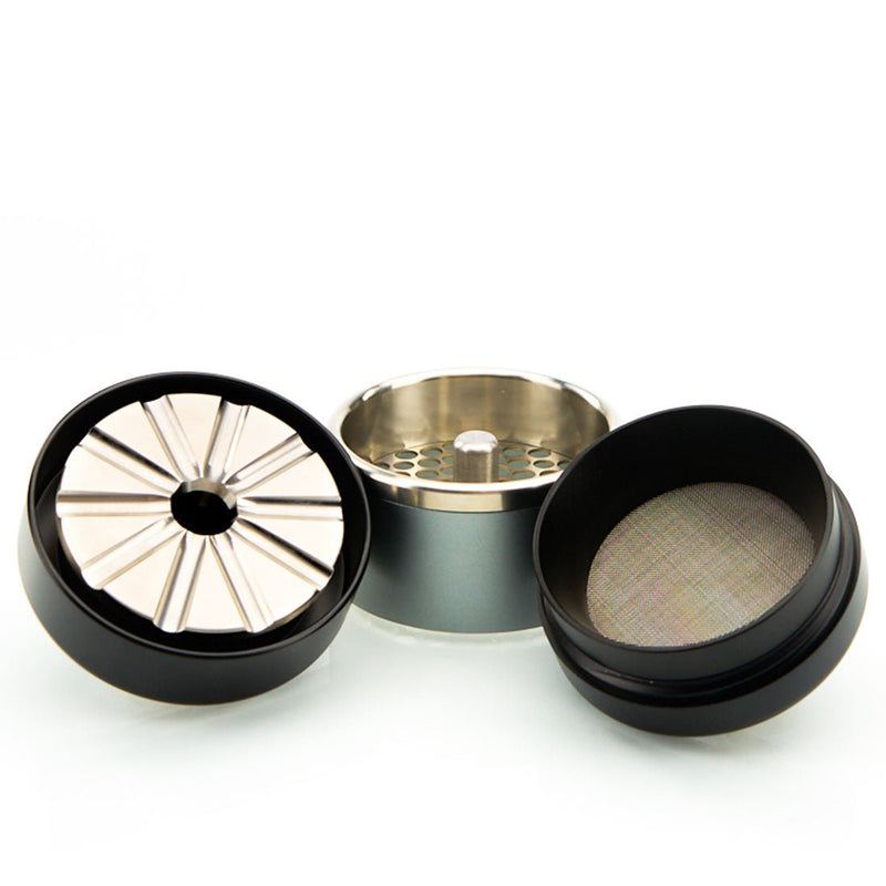 - 4-piece grinder made from hybrid construction of food-grade stainless steel (304) and aircraft-grade aluminum (6061)