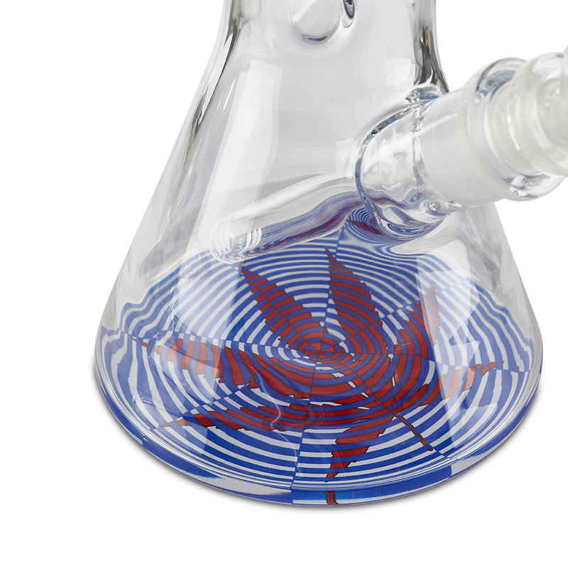 Take a trip with the Trippy 4/20 Leaf Water Pipe. This clean and simple beaker water pipe comes with everything you need in a compact piece. Featuring everyone's favorite plant with a dope purple and blue spiral trippy design, style is definitely not missing in this simple water pipe. Enjoy smooth, cool hits by adding ice cubes in the ice catcher that is integrated into the mouth piece, and don't worry about buying extra parts as this beaker has a down stem and 14mm dry-herb bowl included. The Trippy 4/20 water pipe will have you celebrating your favorite holiday all year round.