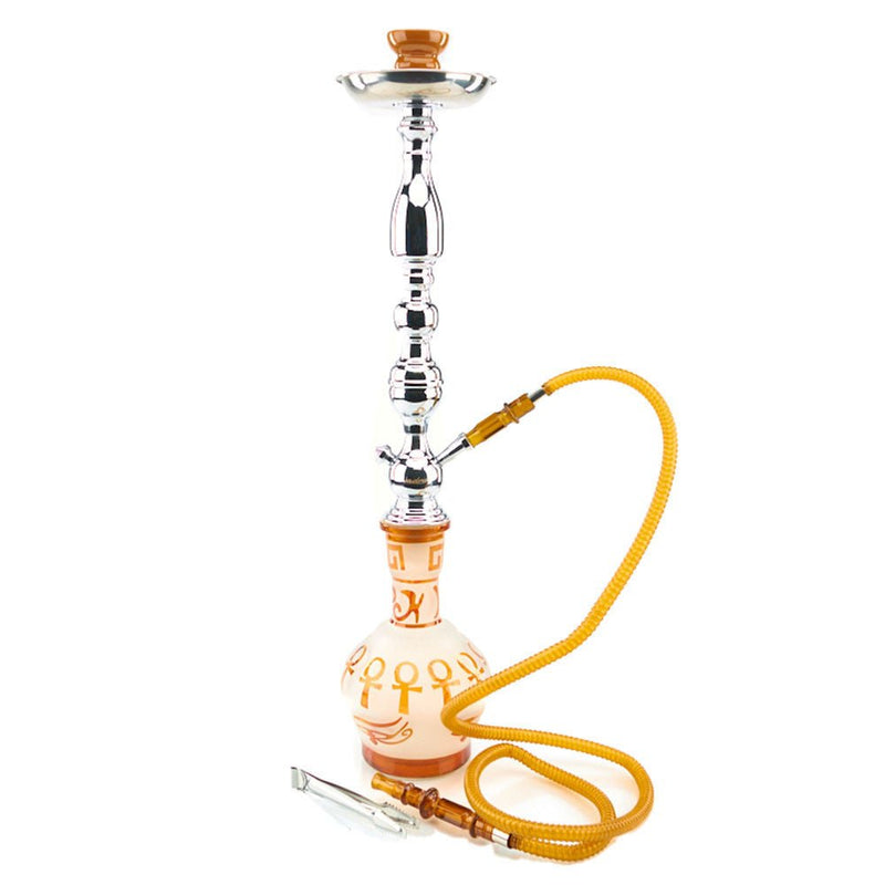 Shisha enthusiasts will fall in love with the Vadra Echo Hookah. Standing at 26-inches tall, this stunning Hookah features a thick amber-colored glass base with series of etched Anch's and Eye of Horace, giving it an authentic Egyptian look and feel. The matching bowl is made of sturdy ceramic and is ideal for natural burning or quick-start coals. This Hookah has sculptural lines that accent the base, and the aluminum makes it lightweight and rust-resistant. A traditional design with a modern twist, the Vadra Echo Hookah has a wide gauge stem with a built-in diffuser that hits like a champ, giving you a smooth and tasty flavor.