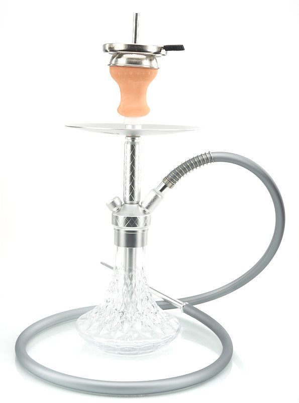 Searching for a hookah with style, presence, and simplicity? Vadra Hookah makes that quest a lick with the new Vadra Hookah Sinclair. Their Sinclair edition plays on familiar Vadra Hookah Tropes like a sturdy, durable ceramic bowl to hold your shisha, Stainless steel stem and downstem, and the always reliable heat management system. This heat management system allows hookah enthusiasts to direct or channel the heat from the coals in order to burn your shisha more effectively. This hookah is the perfect device to take on your next road trip because of the stainless steel frame and tempered glass vase, but stationary use is also a hit with this minimalist hookah. The stainless steel downstem opens into a diffuser to purify the hazy bubbles traveling through the single hose hookah and into your lungs. Simple, elegant, and accessible illustrate a portrait of this hookah, especially when your eyes meet the concise cross-hatch design on the vase of this compact hookah.